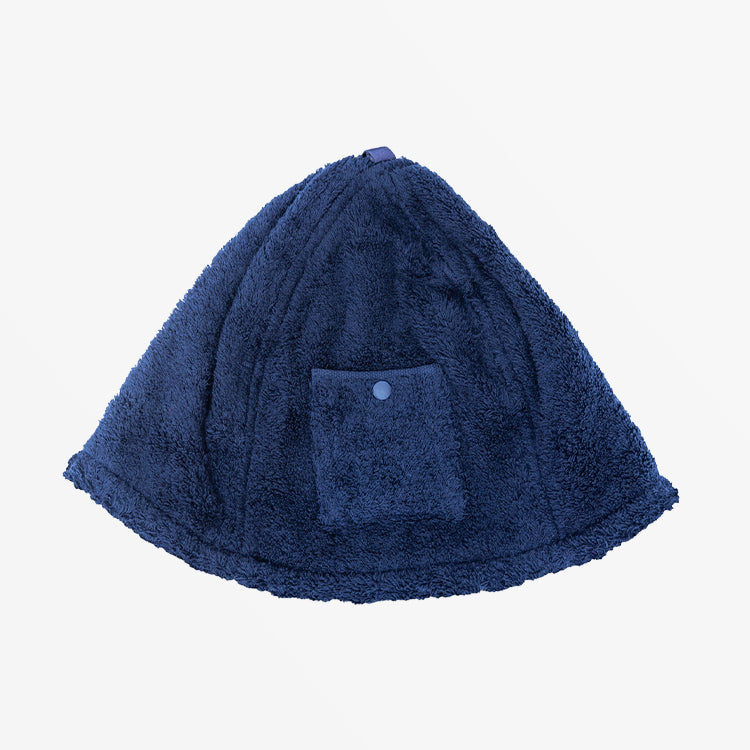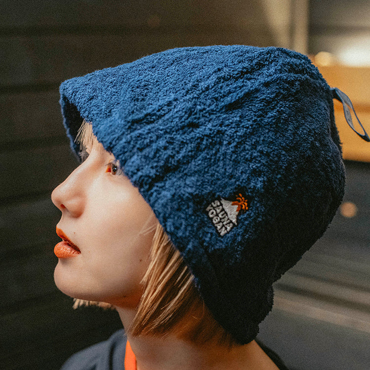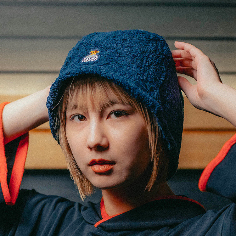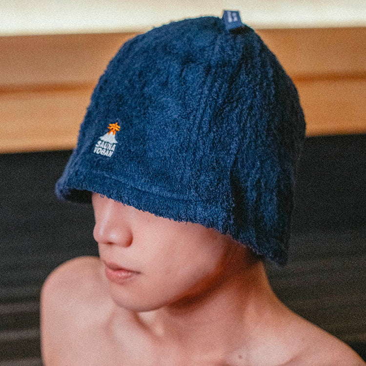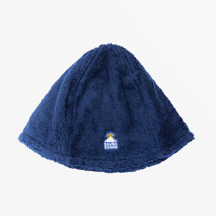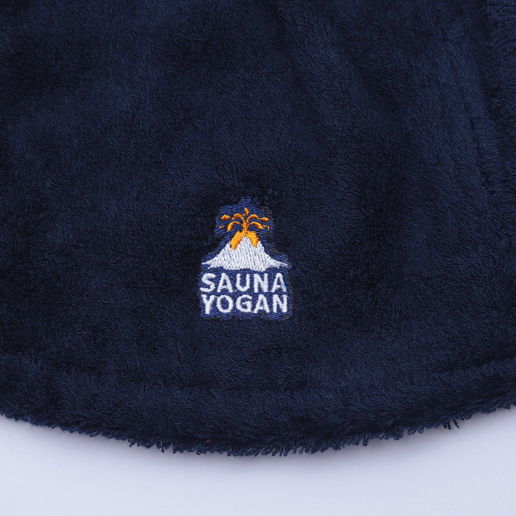 SAUNA YOGANの刺繍ロゴと側面にポケットをあしらったサウナハット。