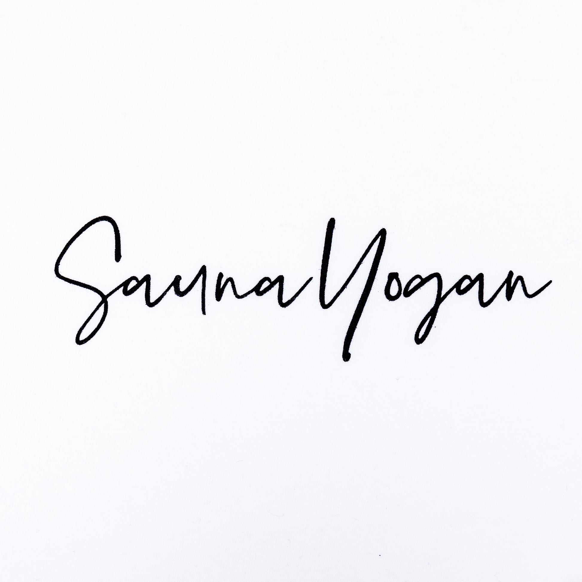 胸元に「SaunaYogan」と筆記体でプリントされたオリジナル長袖Tシャツ。